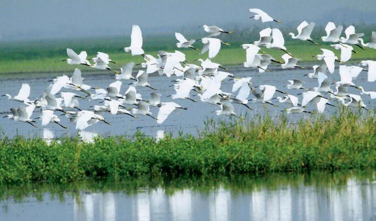 湖南東洞庭湖自然保護區為我國著名淡水湖洞庭湖的一部分,受長江和湘、資、沅、澧諸水係的水量周期升降影響,形成了水、沼澤、淺灘和低岸等複雜的自然地形。洪水帶來的營養物質沉積,又給水生動植物繁衍提供了條件,加之地處中國冬季候鳥越冬和夏季候鳥繁殖結合部,鳥類資源非常豐富,僅候鳥就有158種,其中有國家一級保護動物白鶴等10種,二級保護動物天鵝等27種,為我國及至全球重要的濕地和候鳥保護區。