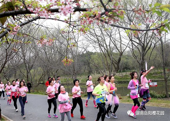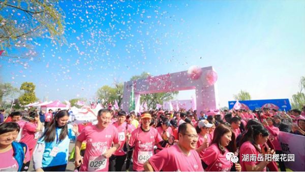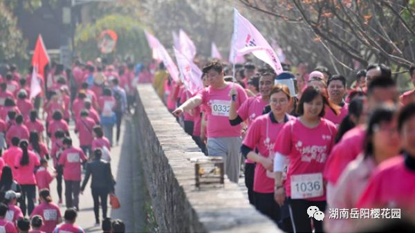 本次櫻花跑是今年櫻花節係列活動中的重頭戲, 選手們身著粉色賽服的選手們,如同花海中的粉色溪流,成為嶽陽一道亮麗的景致。