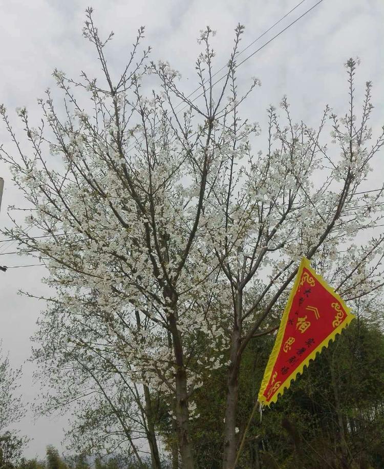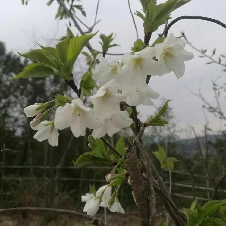 白櫻已綻放枝頭,紅櫻也結苞,