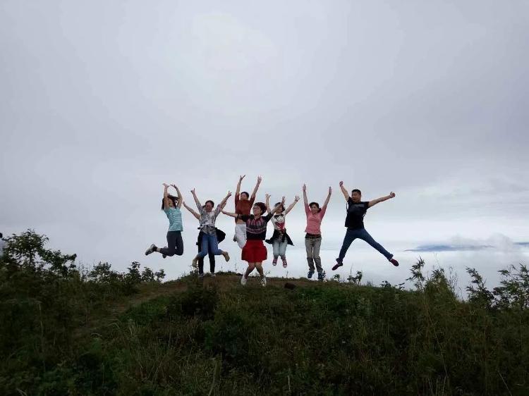 巧遇雲海,歡騰的盆友