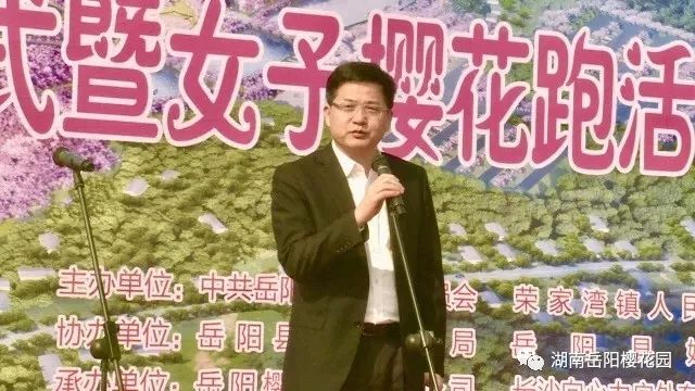 (嶽陽縣委書記田文靜宣布開園儀式暨櫻花跑活動開始!)