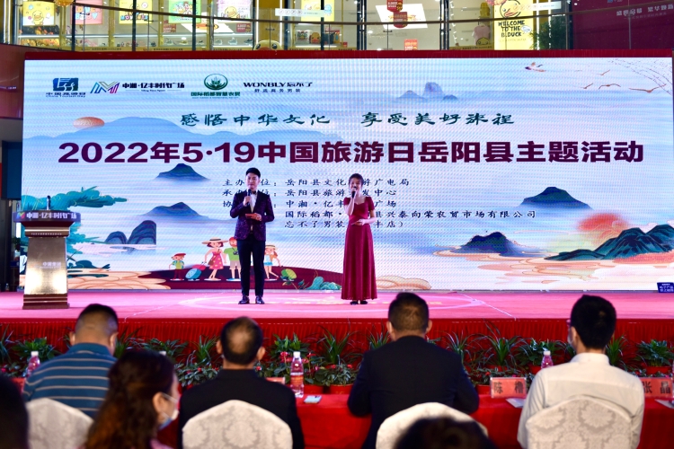 5月17日晚,由嶽陽縣文旅廣電局主辦,縣旅遊開發中心承辦,中湘·億豐時代廣場、國際稻都嶽陽縣興泰向榮農貿市場有限公司、忘不了男裝(億豐店)協辦的“2022年5.19中國旅遊日嶽陽縣主題活動”在中湘·億豐時代廣場舉行。
