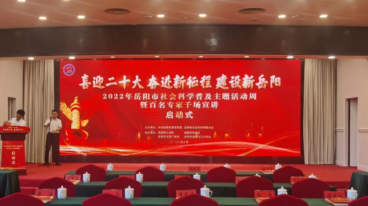 6月7日,中共嶽陽市委宣傳部、嶽陽市社會科學界聯合會在南湖賓館舉辦“喜迎二十大 奮進新征程 建設新嶽陽”2022年嶽陽市社會科學普及主題活動周暨百名專家千場宣講啟動式,並為嶽陽縣文化館等5家新晉為嶽陽市社科普及基地的單位進行了授牌。