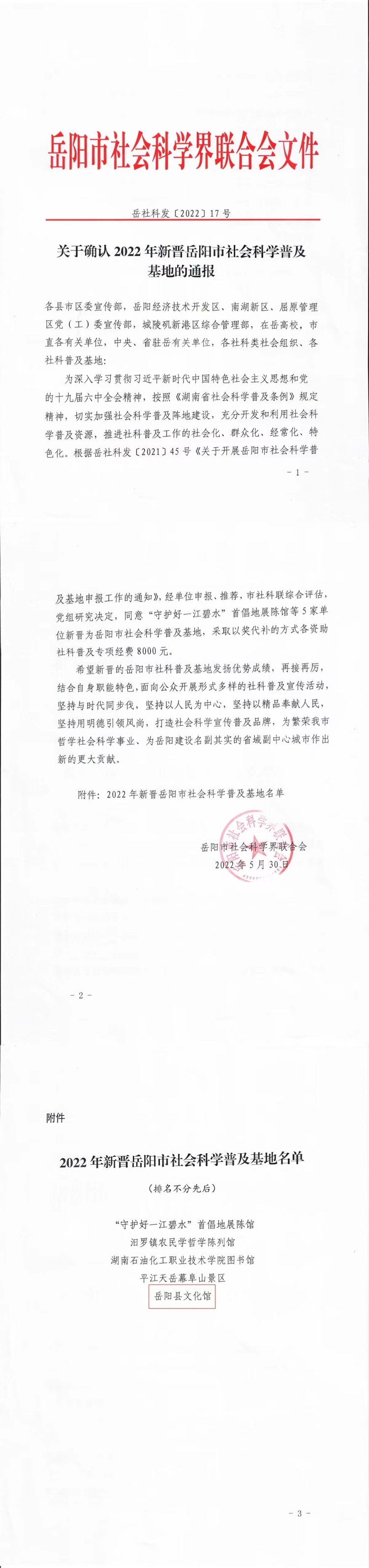 喜訊!嶽陽縣文化館新晉為嶽陽市社會科學普及基地