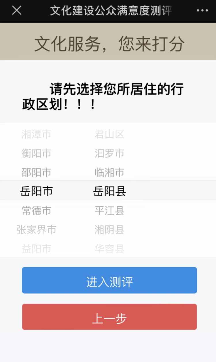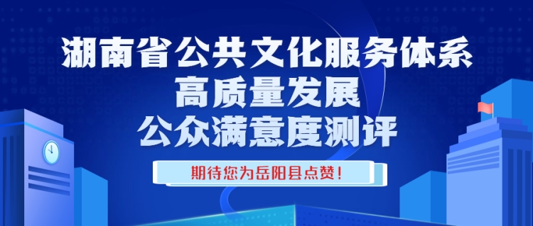 嶽陽縣公共文化服務體係高質量發展公眾滿意度測評,期待您的滿意評價,您的參與是對我縣公共文化服務工作的肯定,感謝您的支持與配合!