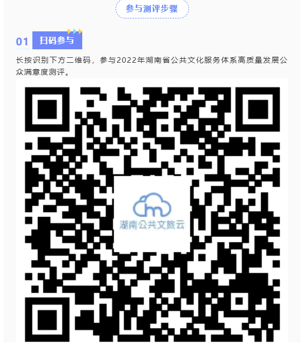 為貫徹落實《中華人民共和國公共文化服務保障法》《湖南省實施〈中華人民共和國公共文化服務保障法〉辦法》和《湖南省公共文化服務體係高質量發展五年行動計劃(2021年-2025年)》(湘文旅公共〔2021〕85號)等法律文件要求,省文化和旅遊廳將於2022年11月21日至11月26日,對全省各市州、縣市區依法開展公共文化服務體係建設情況進行公眾滿意度測評工作。敬請支持參與本調查。