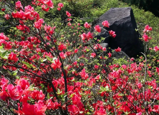 “一園紅豔醉陂陀,自地連梢簇蒨羅。”每年的4月到5月,大雲山的野生杜鵑花,便進入了盛花期。走過一段蜿蜒向上的山路,杜鵑花便漸漸入了眼簾,一簇簇杜鵑花於靜謐中綻放,釋放出些許春日的活力。璀璨如煙花,又似街市霓虹,惹得遊人爭相前往欣賞。來大雲山登高望遠、賞花、許願祈福···