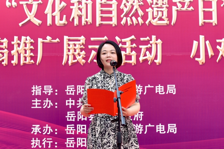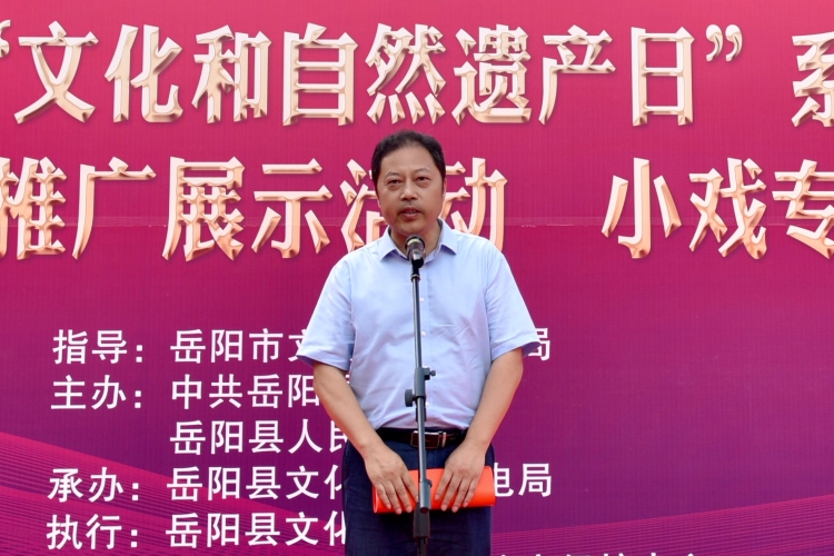 六月的巴陵,荷花香四麵,清風映綠波。在這個充滿了美好與希望的日子裏,关键词2在縣花鼓戲傳承劇院隆重舉辦嶽陽縣 2023 年“文化與自然遺產日”係列活動,借此機會,我謹代表縣文旅廣電局向大力弘揚我縣優秀傳統文化,積極傳承、保護地方文化遺產的廣大非遺工作者表示親切的問候!向長期以來關心、支持文化遺產保護事業的社會各界朋友表示衷心的感謝!