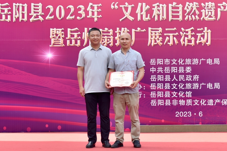 縣人民政府副縣長續廣寧為獲得“2022年度全縣非遺保護工作優秀傳承人”彭澤榮(市級非物質文化遺產代表性項目巴陵青陶製作技藝傳承人)頒獎。