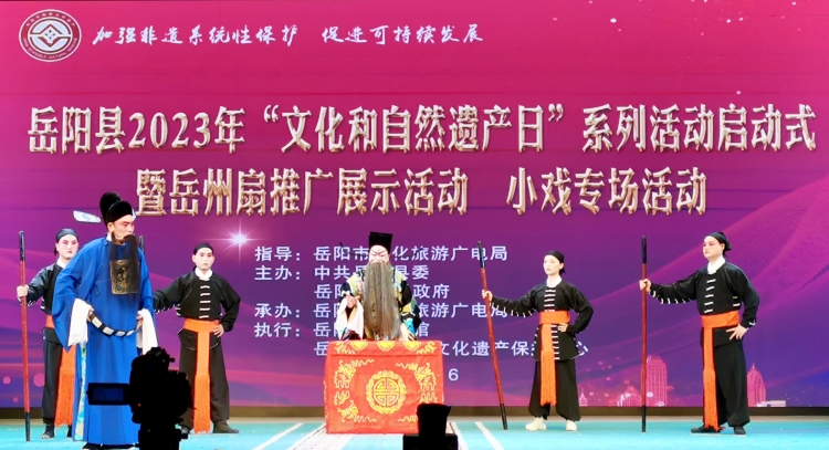 2023年6月10日是我國第七個文化和自然遺產日,今年的主題是“加強非遺係統性保護 促進可持續發展”。6月10日下午,嶽陽縣2023年“文化和自然遺產日”係列活動在縣花鼓戲傳承劇院隆重舉行。