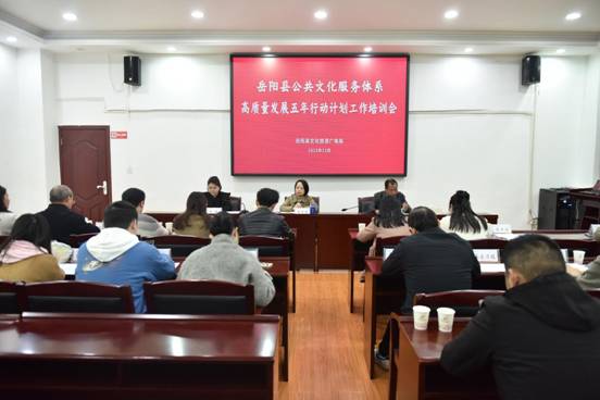 為加快推進全縣公共文化服務高質量發展五年行動計劃和文化文物統計工作,有效帶動縣域公共文化資源共建共享和服務效能提升。11月15日上午,嶽陽縣文旅廣電局以多會合一的方式,召開全縣公共文化服務高質量發展工作培訓班,分階段就公共文化服務高質量發展五年行動計劃工作、文化文物統計、基層公共文化服務培訓、2023年度“洞庭英才·文藝優才”項目等工作進行培訓部署。縣文旅廣電局主要負責人、分管公共文化服務負責人,公共服務股、財務股負責人;各鄉鎮綜合文化站長、資料員,縣圖書館、文化館、美術館、博物館等單位負責人及統計員參加培訓。
