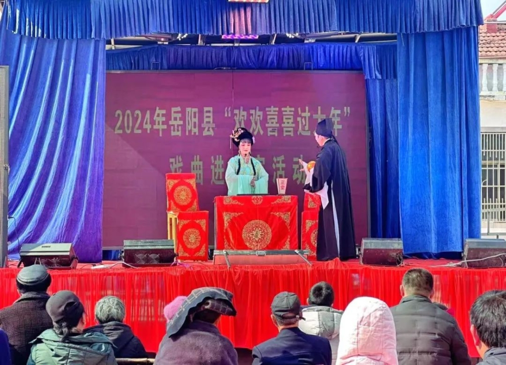 為營造歡樂祥和的春節氛圍,豐富群眾新春佳節文化生活,春節期間,嶽陽縣花鼓戲劇團組織演職人員前往黃沙街鎮、柏祥鎮、筻口鎮,新牆鎮、榮家灣鎮等鄉鎮開展“歡歡喜喜過大年·戲曲進萬家”演出活動,為群眾送上精彩的花鼓戲劇目。