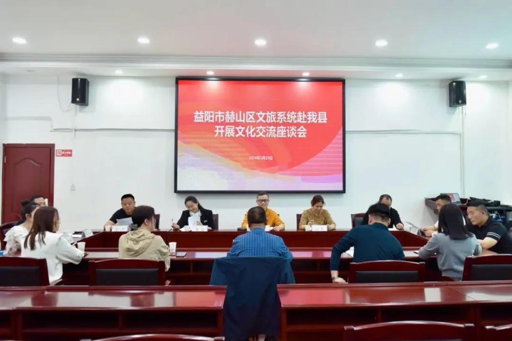 3月29日下午,益陽市赫山區文旅廣體局黨組成員、總工程師姚巍一行來我縣交流學習,並舉行座談。局黨組成員、副局長方楚生,局公共服務股,縣文化館相關負責人參加。