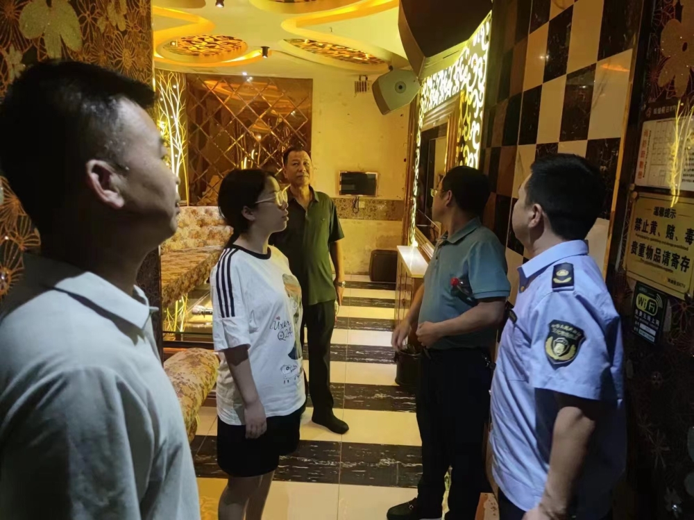 在對新牆、楊林街、月田、相思等鄉村文娛樂場所檢查時,發現部分KTV歌廳消防通道堵塞並從內部反鎖、滅火器材過期、消火栓沒有施行月檢製度等問題,檢查人員對堵塞消防通道情況責令現場整改。
