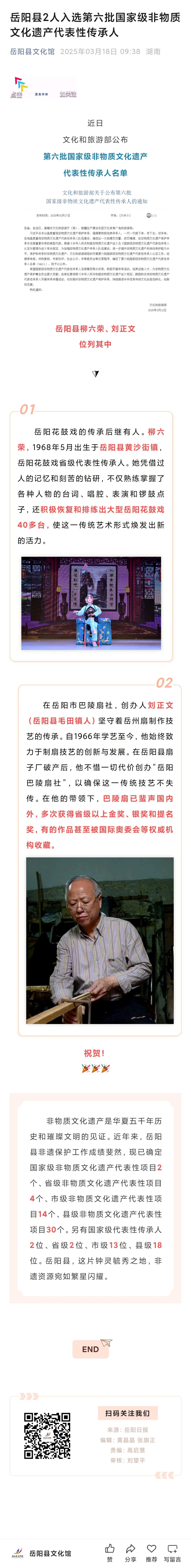 嶽陽縣2人入選第六批國家級非物質文化遺產代表性傳承人