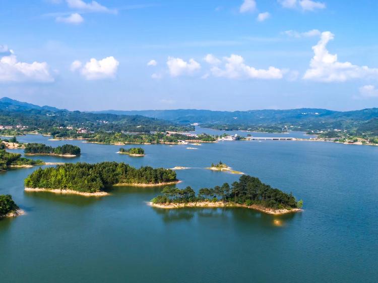 其自然風景有六大特色:一是範圍大。水庫水岸線總長328公裏,水麵6.24萬畝,月田、毛田、小港三條支河匯集於此,庫灣衝叉達1268條;二是氣候好。水庫四周群山環抱,花草叢生,涵養水份,調節氣候,使之四季如春,是旅遊避暑的勝地;三是孤島多。庫中島嶼星羅棋布,共有147座,其中最大的黃土山孤島麵積4220畝;四是風景美。庫區內層巒疊嶂,川穀幽深,看山似螺,觀湖如帶,煙山霧海,藏金納翠;這裏花奇草秀,樹綠山青,水鳥山花錦鱗成趣,遠山近樹碧波相融;倘若春冬泛舟,霧蒸霞蔚,撲朔迷離,仿佛置身於蓬萊仙境;至若朗日登島,心曠神怡,月白風清,盡情飽覽水鄉之美;五是水質優。庫水碧綠透徹,明淨如鏡,甜似甘露沁人心脾,經國家有關機構檢驗,被定為一級飲用水,現已供嶽陽市區用水;六是名勝多。庫內有“真武遺墨”、“怒斬龍潭”、“雞鳳爭鳴”、“八仙登台”、“高祖相思”等眾多名勝古跡和神話傳說。該水庫建成後淹沒山頭無數,形成數百個小島,雅稱“千島之湖”,與新近開發的明代古建築群張穀英村、大雲山國家森林公園連成一片,成為嶽陽市新的風景旅遊區。