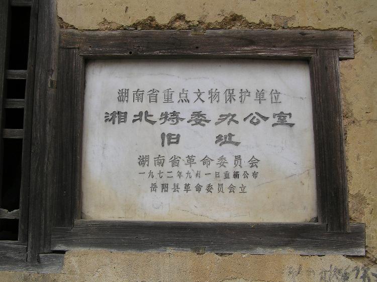 湘北特委辦公室舊址位於嶽陽縣張穀英鎮。舊址為五間進,兩側廂房的普通農舍。1930年10月—1931年6月,湘北特委機關設此,領導平江、湘陰、臨湘、嶽陽一帶的革命鬥爭。在特委書記楊奇等同誌的帶領下,開辟了嶽陽、湘陰、臨湘三縣邊境地區的紅色根據地,建立了中國工農紅軍湘北獨立團,發展了農民自保衛隊武裝,並設有印局。後因敵人瘋狂圍剿,根據地遭到破壞,大批革命誌士慘遭殺害,湘北特委奉命分別向井崗山和藥姑山一帶轉移。舊址經修複後,對外開放。