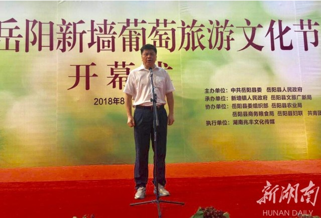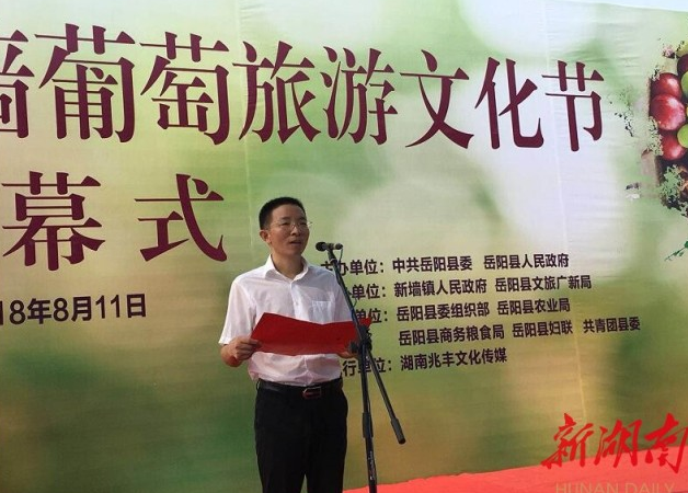 湖南日報·新湖南8月11日訊(記者 徐亞平 徐典波 見習記者 吳廣 張璿 通訊員 甘治國 陳勇平)看是一顆小葡萄,實為一大產業,如今又“長成”一大節會。今天,嶽陽縣委副書記、縣長曾平原宣布,2018嶽陽新牆葡萄旅遊文化節在“全國文明村”嶽陽縣新牆鎮清水村開幕。節會期間,秀出采摘體驗、鄉村趣味家庭親子遊、農民趣味運動會等5大 “主題大餐”,吸引數萬人趕了一場秀色可餐的“葡萄集”。