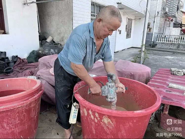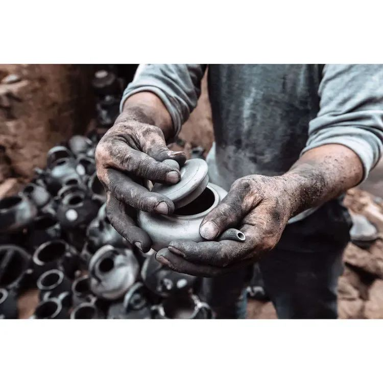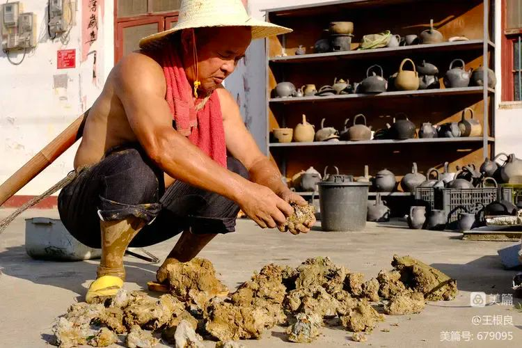 選泥 挑選本地優質觀音土,要求泥土細膩、粘性強、硬度高。含沙量大一點的泥土,具有耐火燒的特點,用於做火鍋。含沙量少的泥土,用來做茶壺。不同等級的泥土製作不同器物。