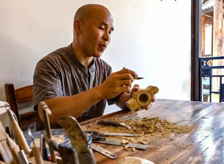 雕刻 挑選一塊幾乎沒有炸裂的原泥,純手工雕刻。