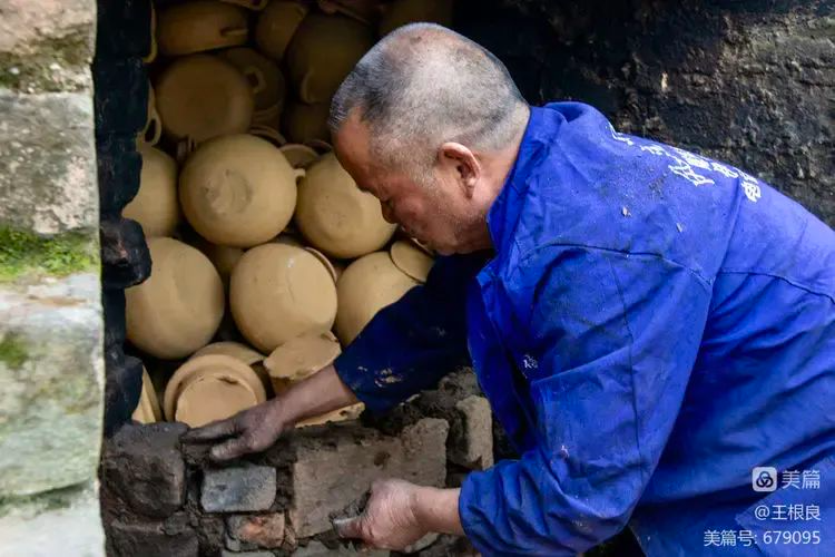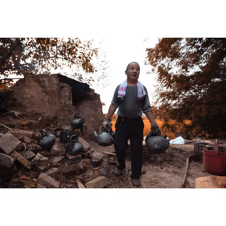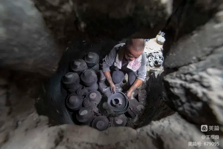 燒窯 以鬆木為燃料烤製。火勢由小到大慢慢升溫。達到燒製溫度在窯頂潑水,目的是隔絕氧氣。