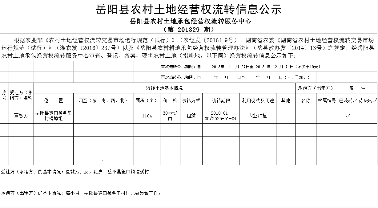 嶽陽縣農村土地經營權流轉信息公示 (第 201829 期)