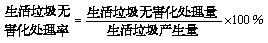 生活垃圾無害化處理率 指報告期生活垃圾無害化處理量與生活垃圾產生量的比率。在統計上,由於生活垃圾產生量不易取得,可用清運量代替。計算公式為: