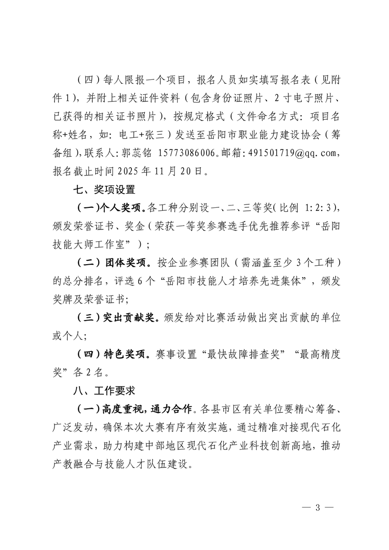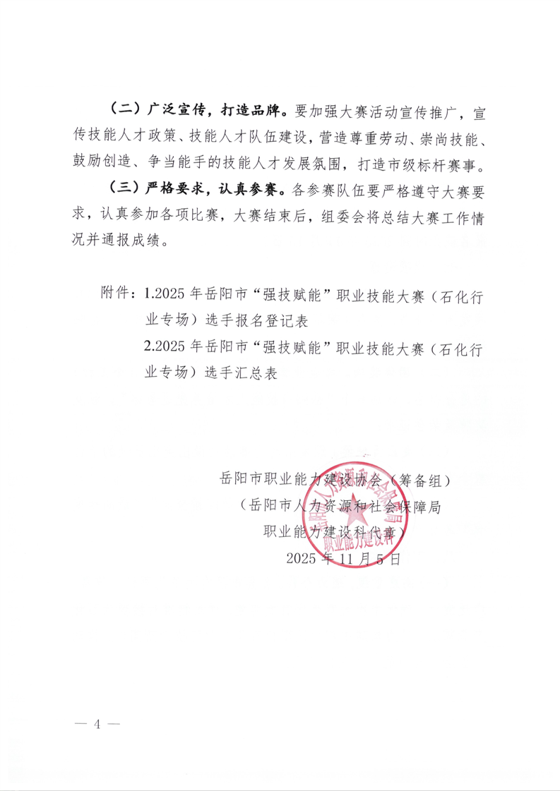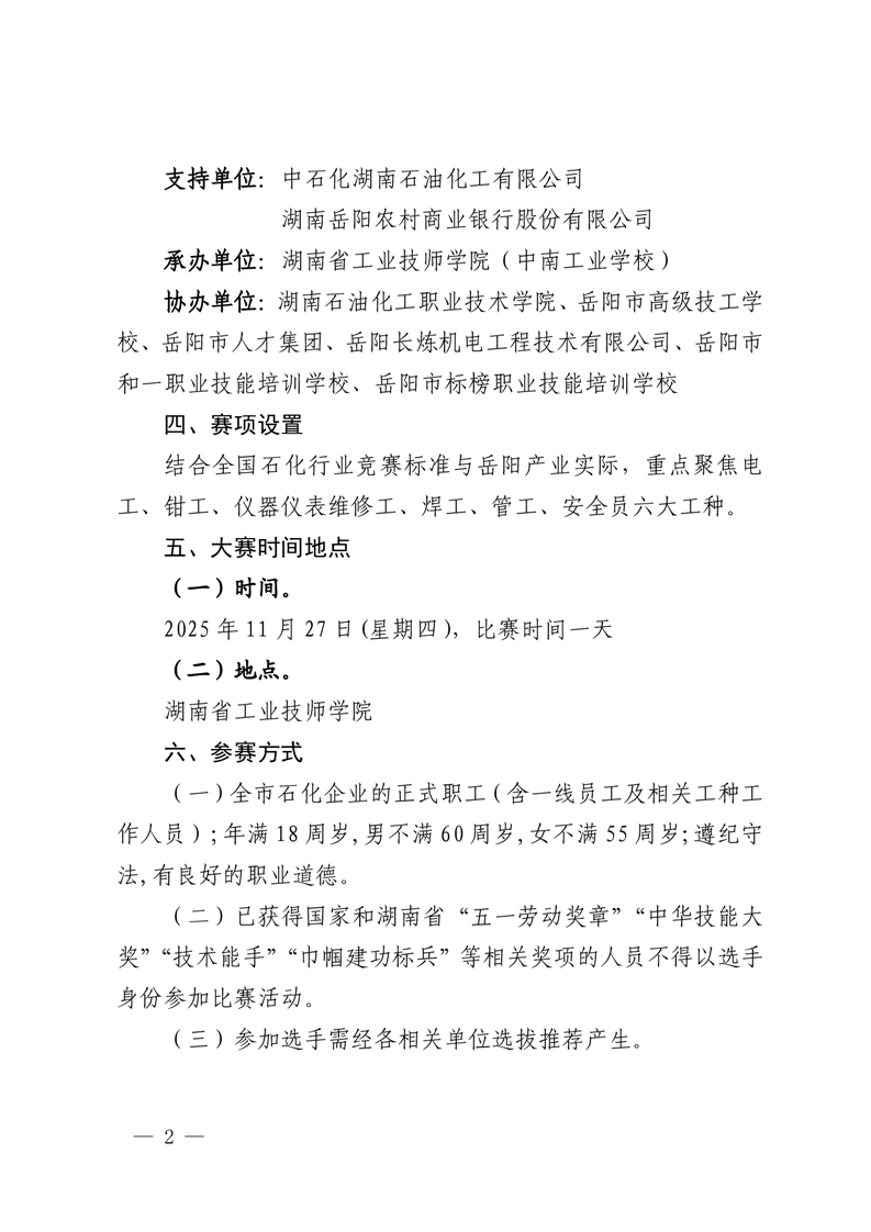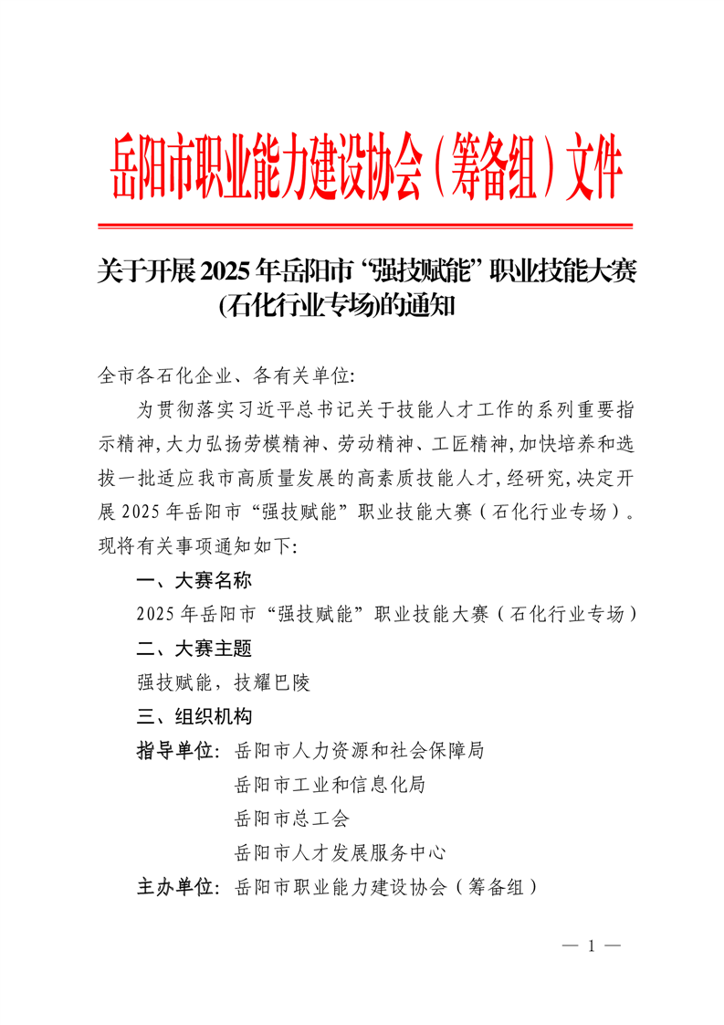 關於開展2025年嶽陽市“強技賦能”職業技能大賽(石化行業專場)的通知