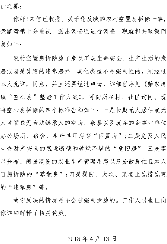 | 標題: | 關於農村空置房拆除 |