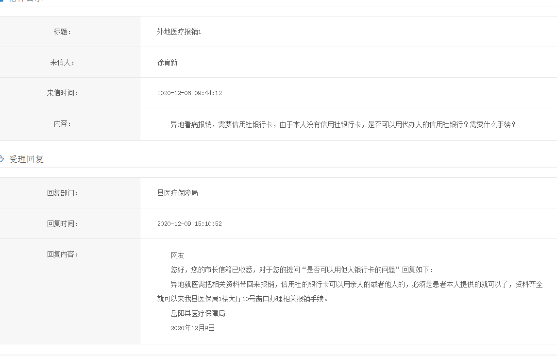 | 回複部門: | 縣醫療保障局 |