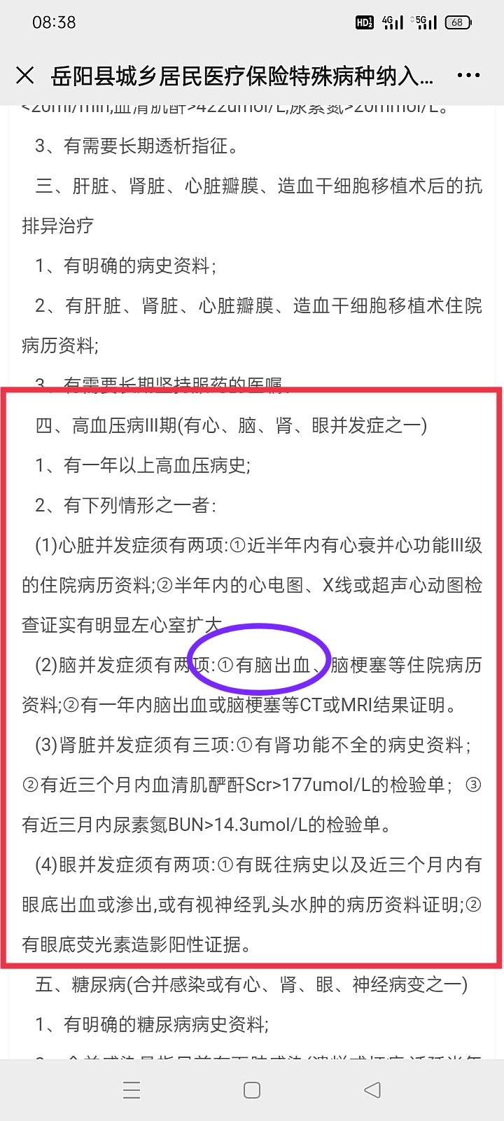 高血壓3級特殊門申請 嶽陽縣政府門戶網裏麵有說到 高血壓3級有心 腦 腎 眼並發症之一就可以, 我提供的資料有高血壓3級 多發腔隙性腦梗死。 為什麽我提供的資料說不符合? (提供了2張附件.其中一張圖片是政府網裏麵的資料) |