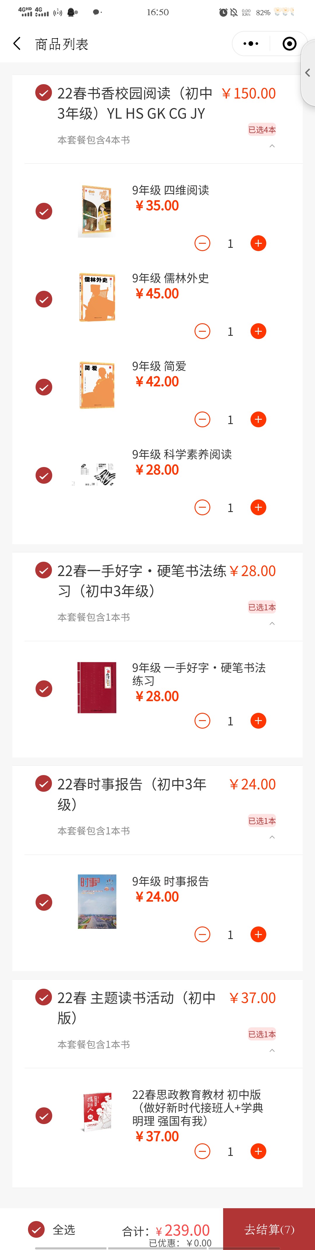 本人在某初中就讀的弟弟每學期需要通過閱達教育小程序(新華書店)訂購一些課外書籍,雖然屬於推薦中學生閱讀的書目,也打著自願征訂的旗號,但是似乎家長們並不知道是否可以“自願”。每次的通知都是要家長盡快交錢然後截圖,似乎是所有人一定要完成的任務。