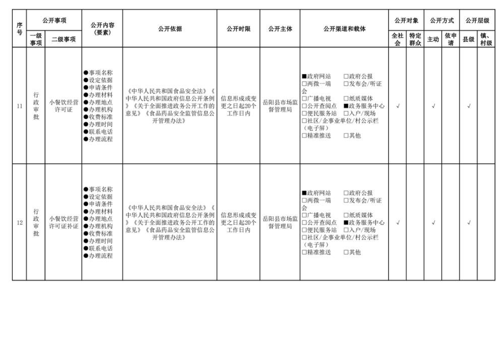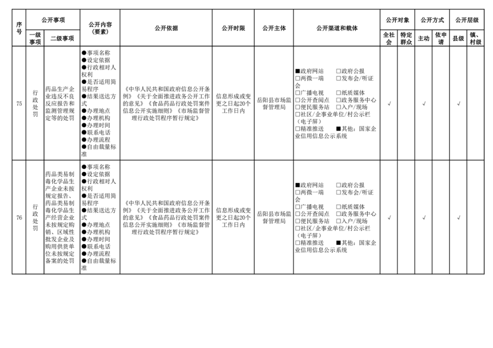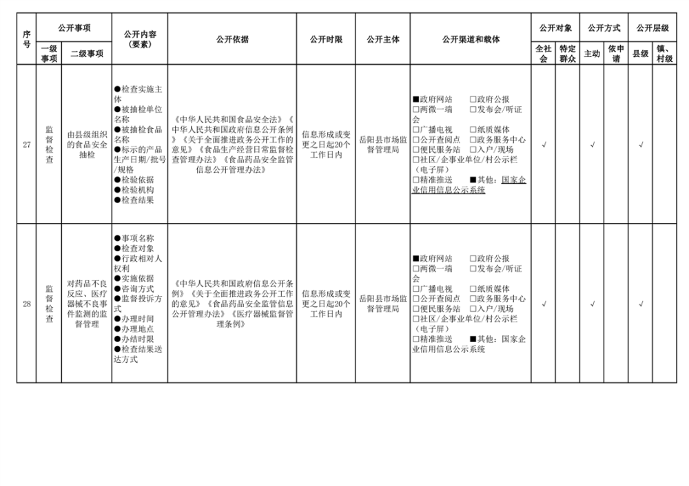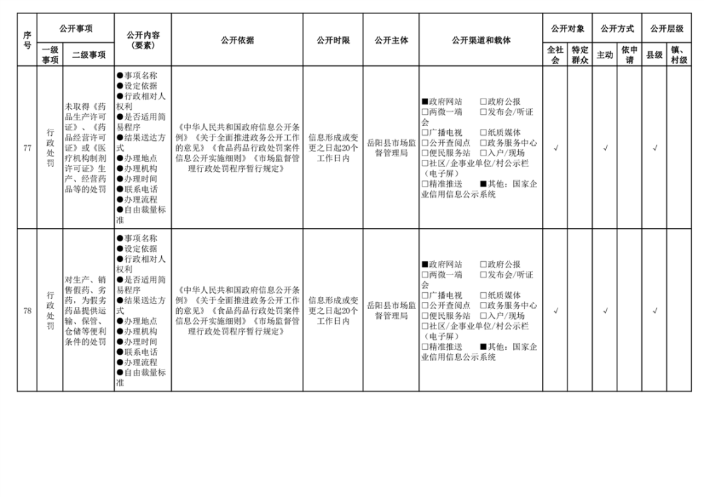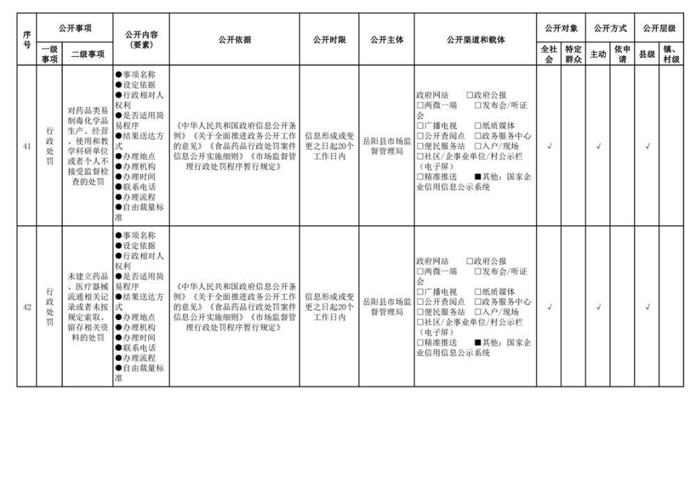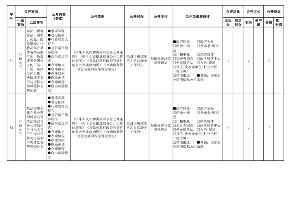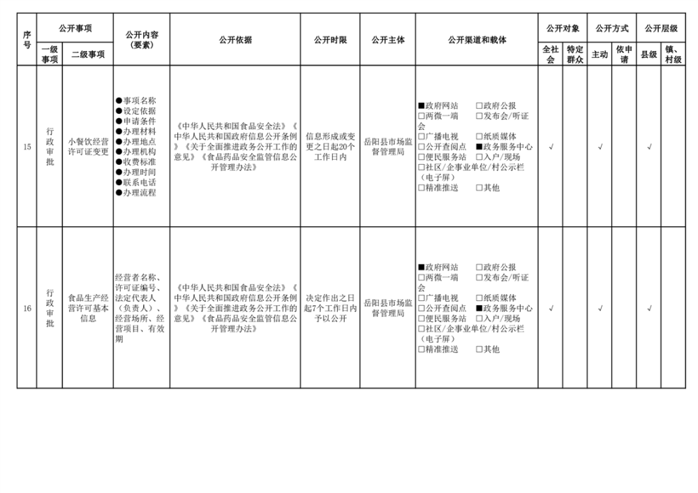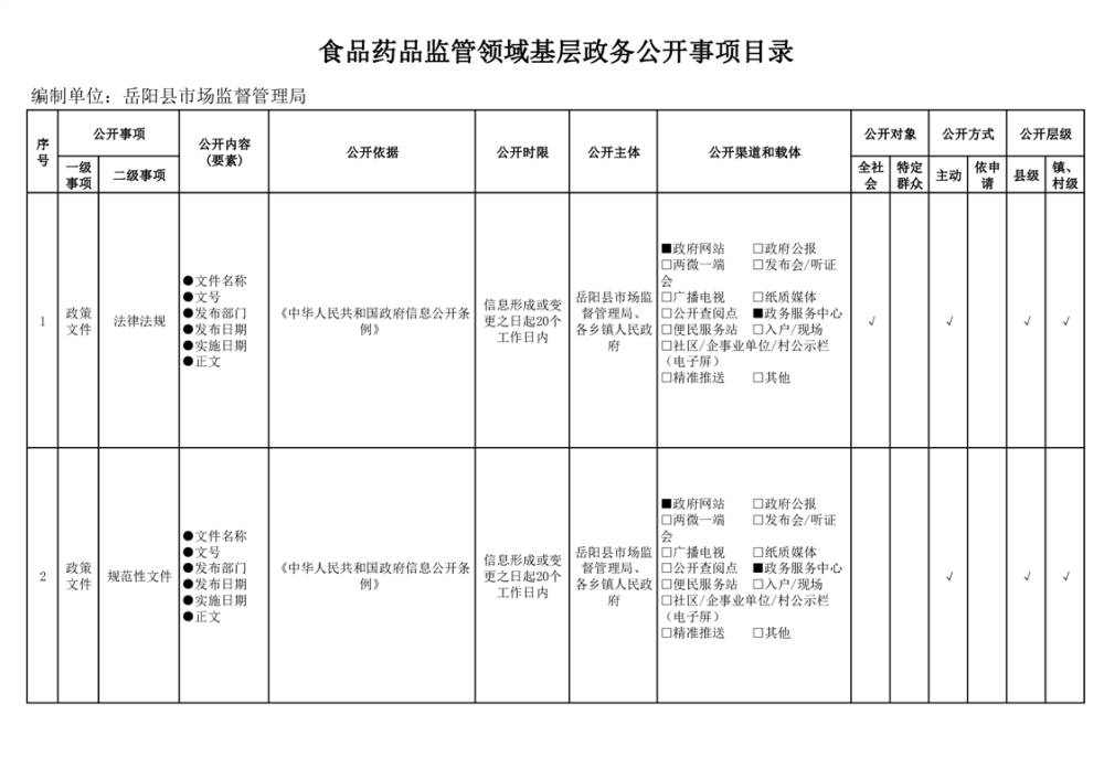 嶽陽縣食品藥品領域基層政務公開標準目錄