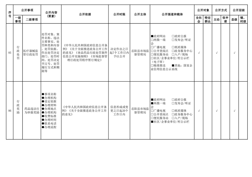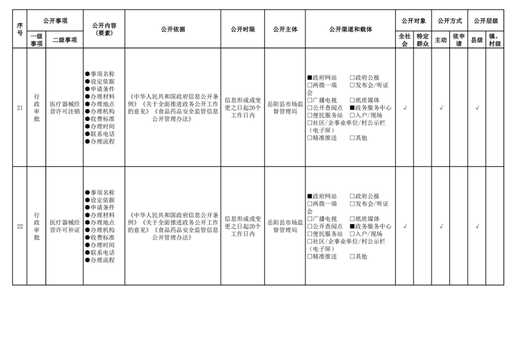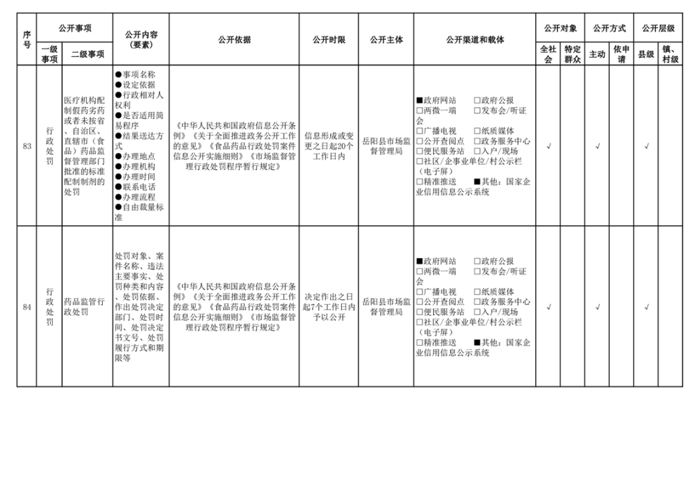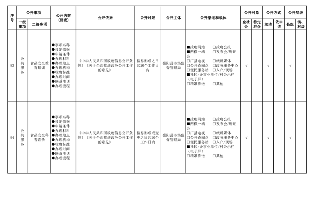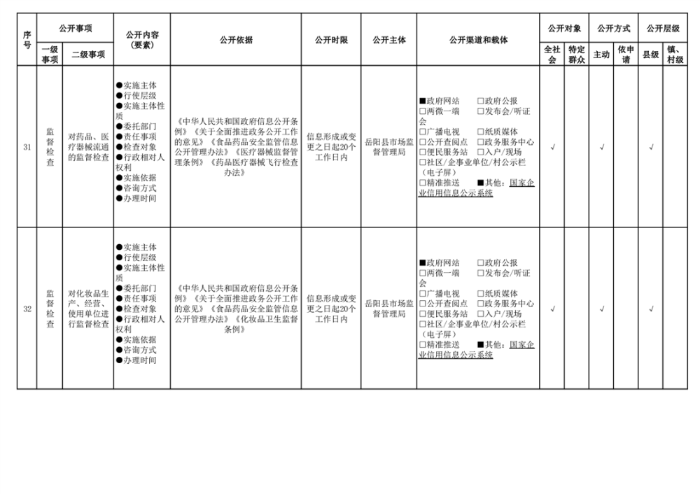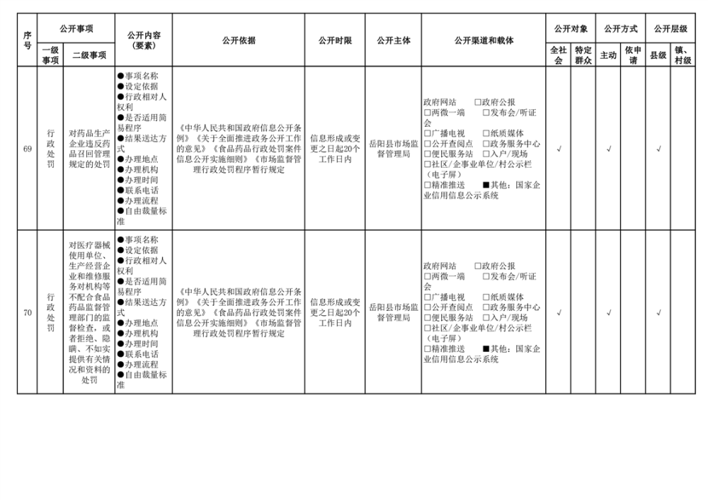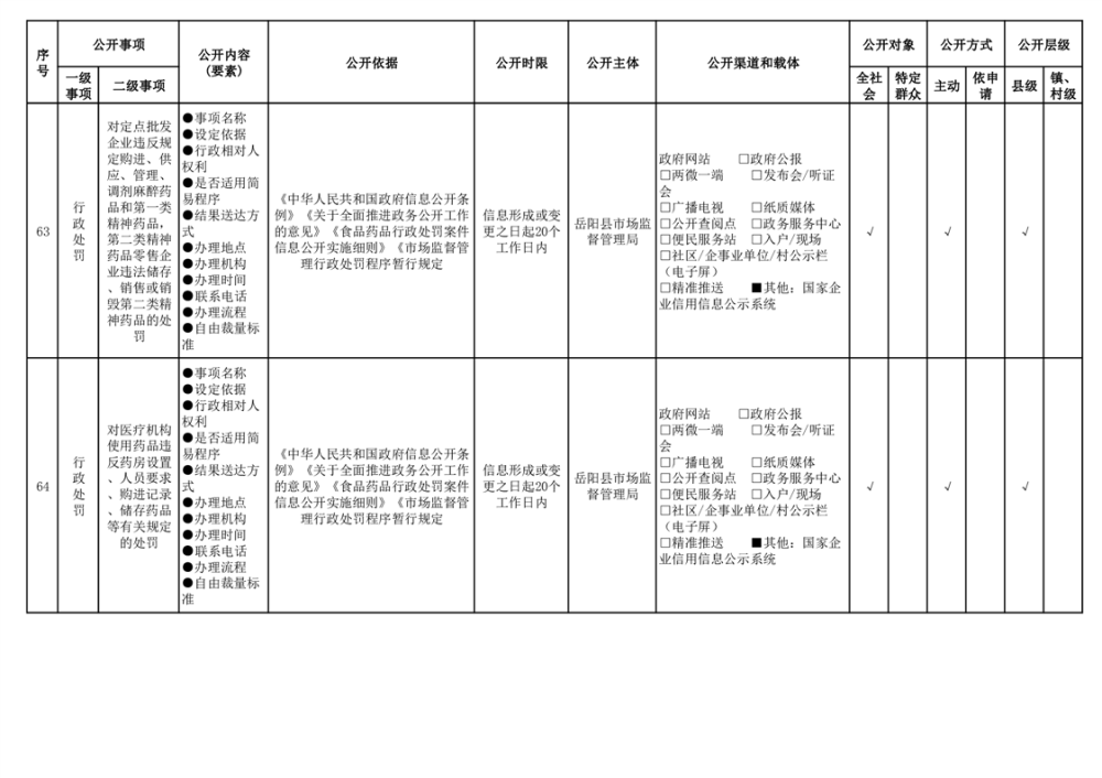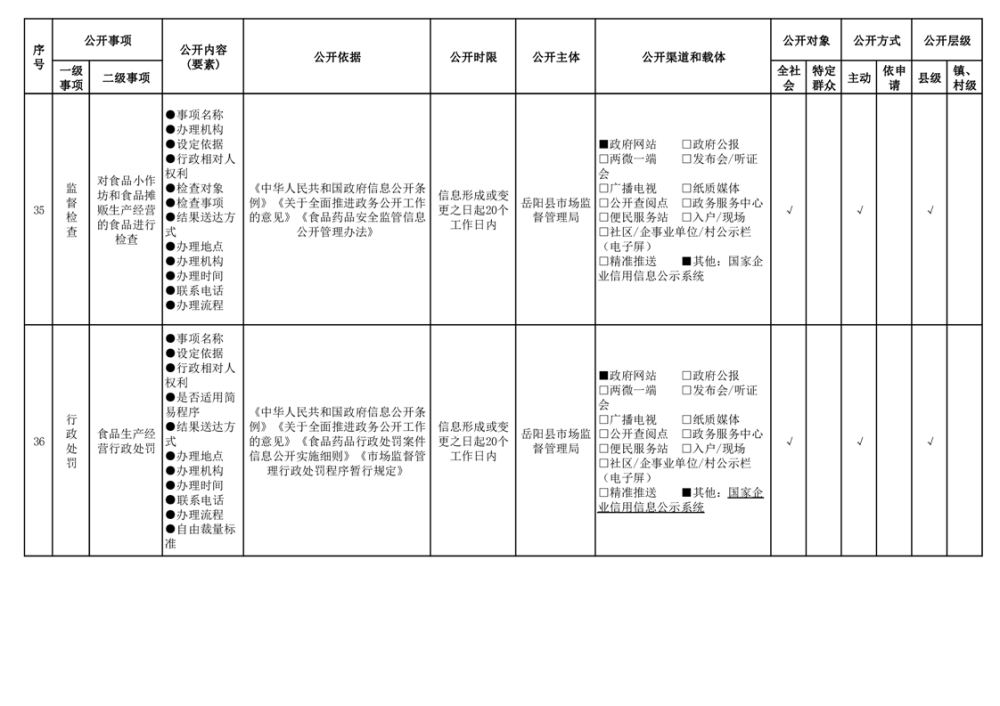 嶽陽縣食品藥品領域基層政務公開標準目錄