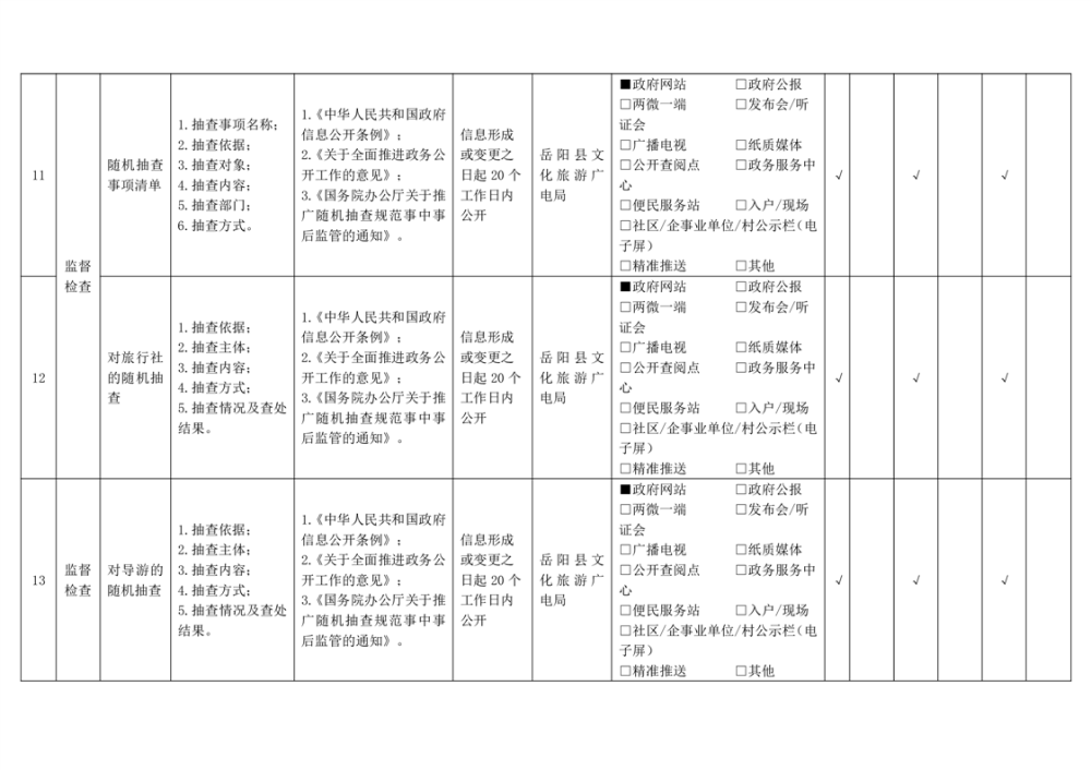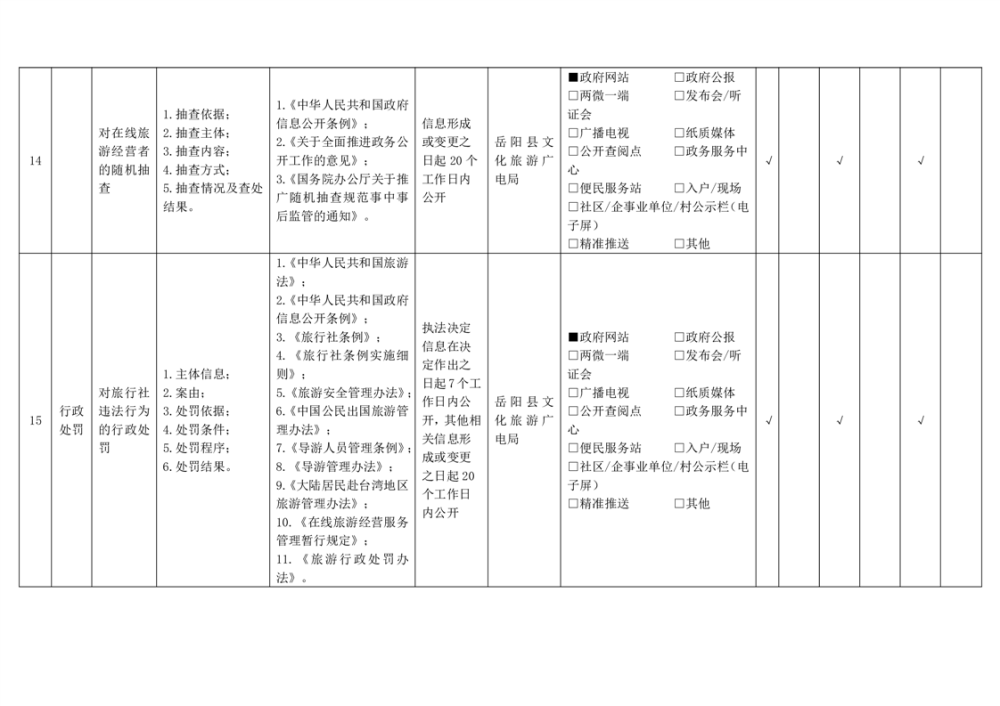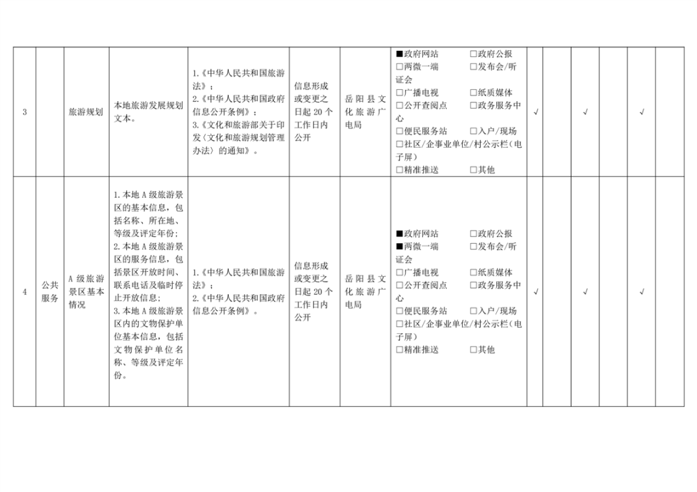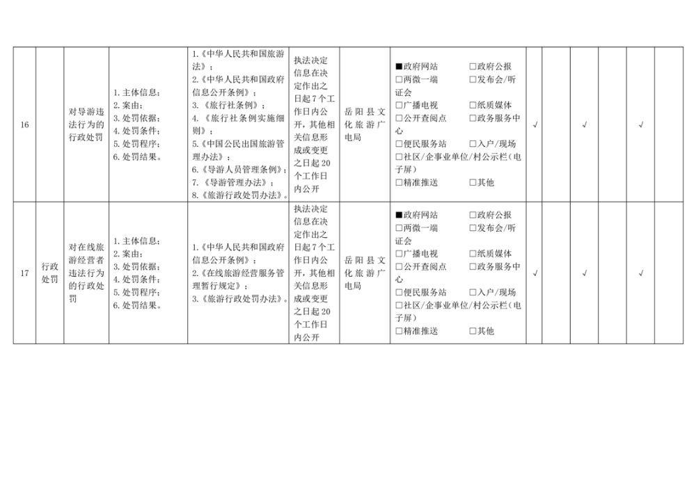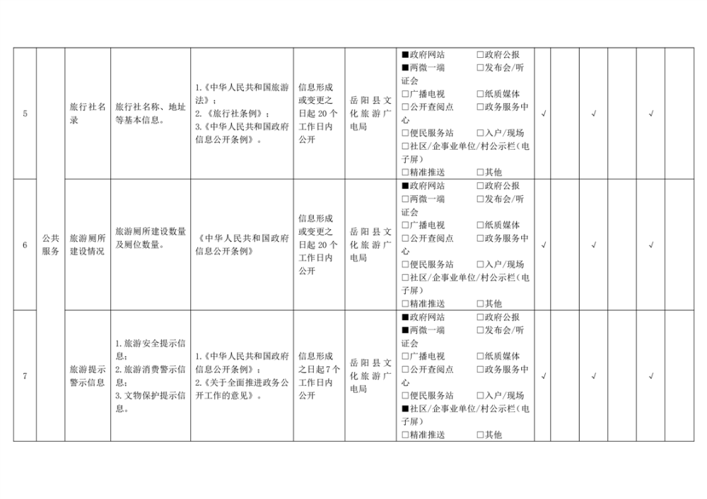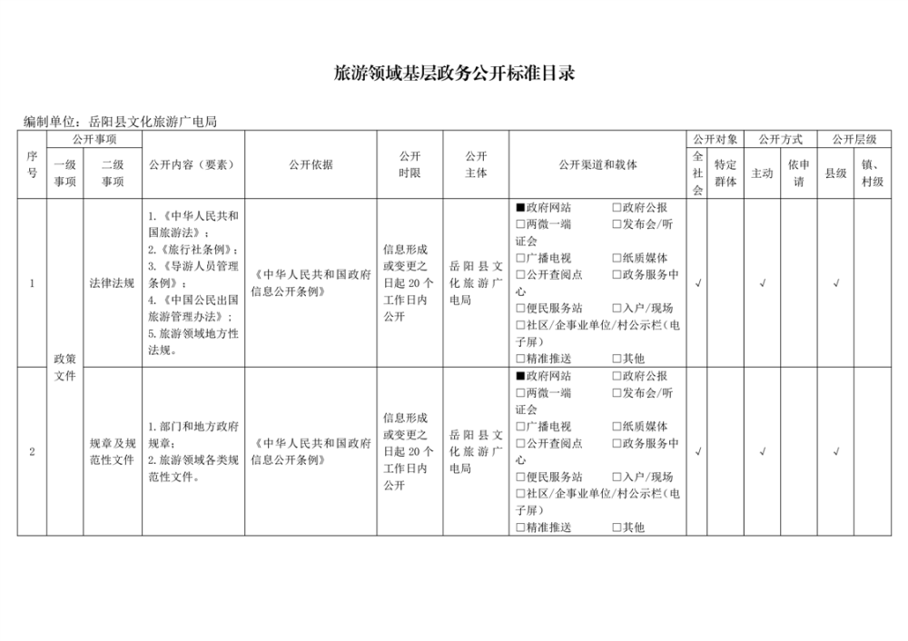 嶽陽縣旅遊領域基層政務公開標準目錄