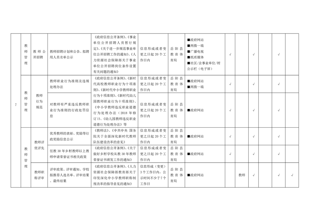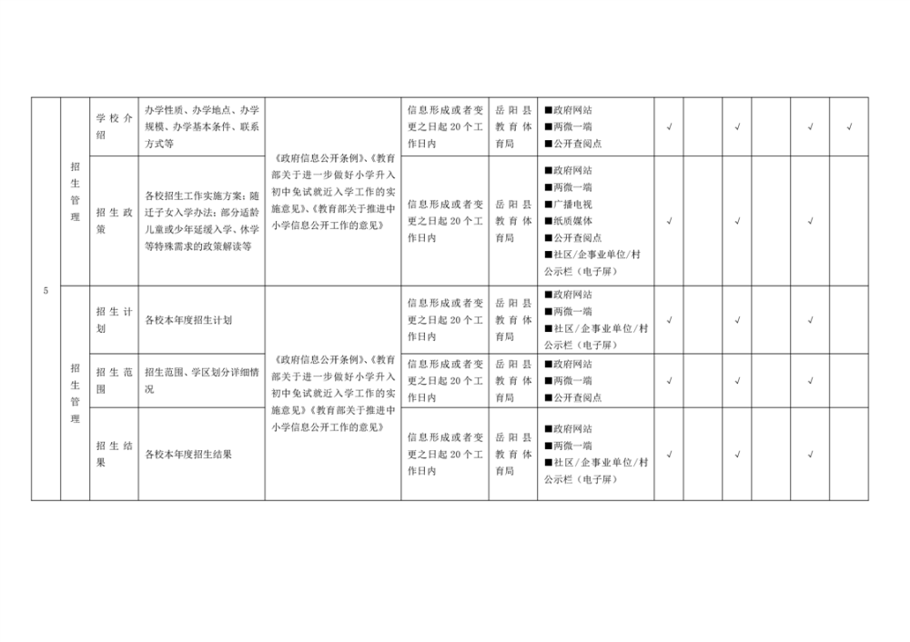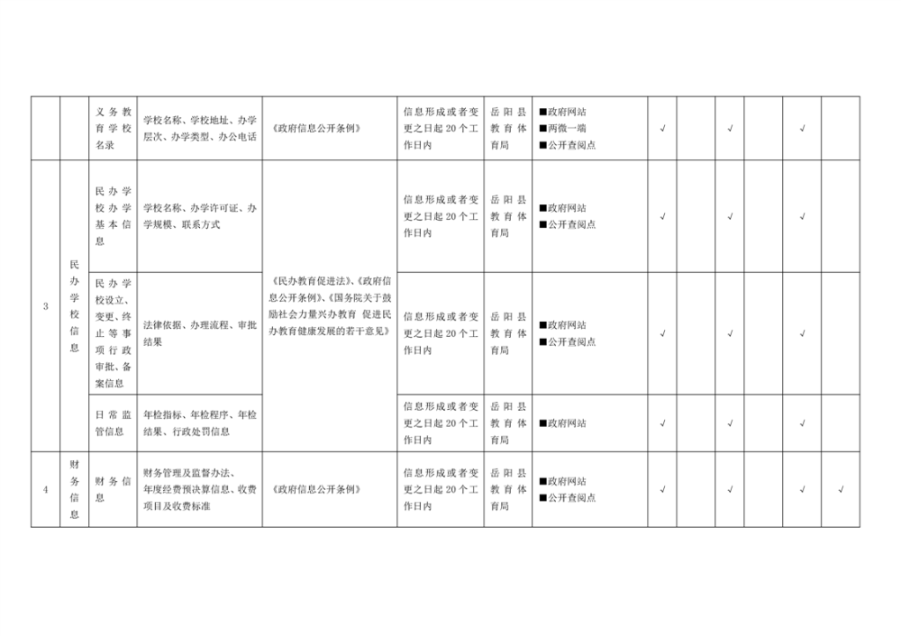 嶽陽縣義務教育領域基層政務公開標準目錄