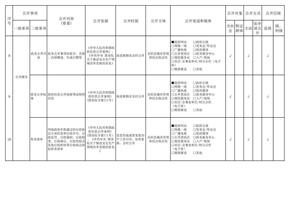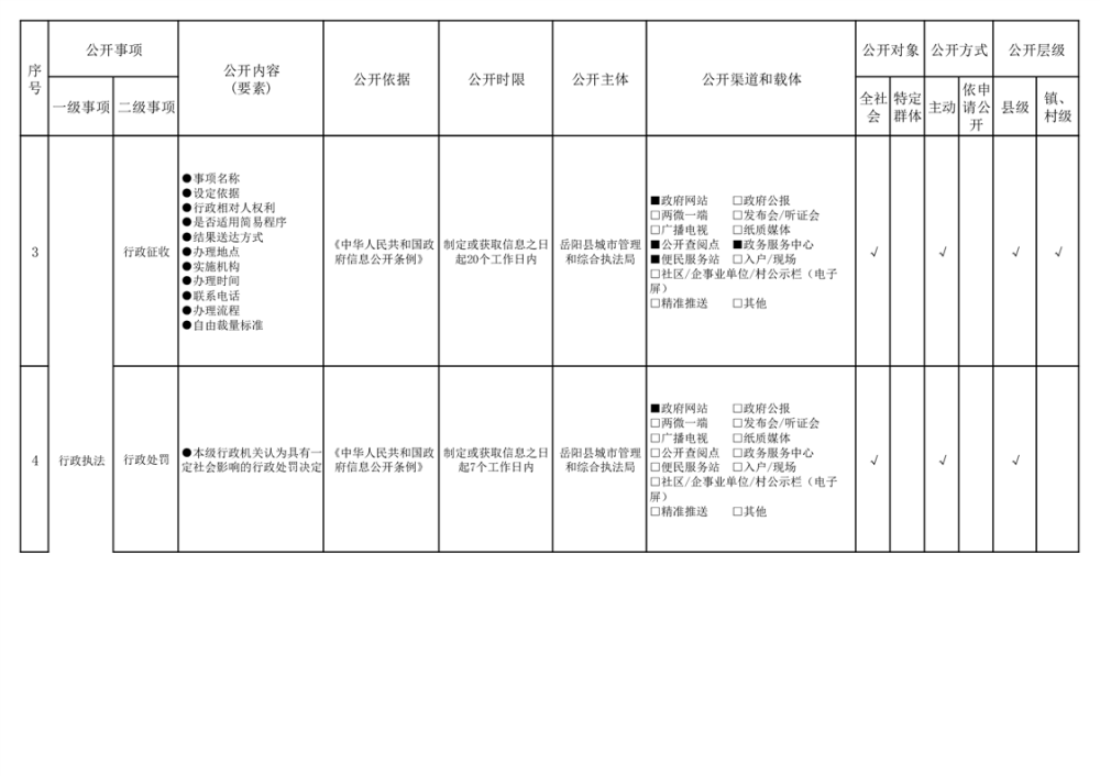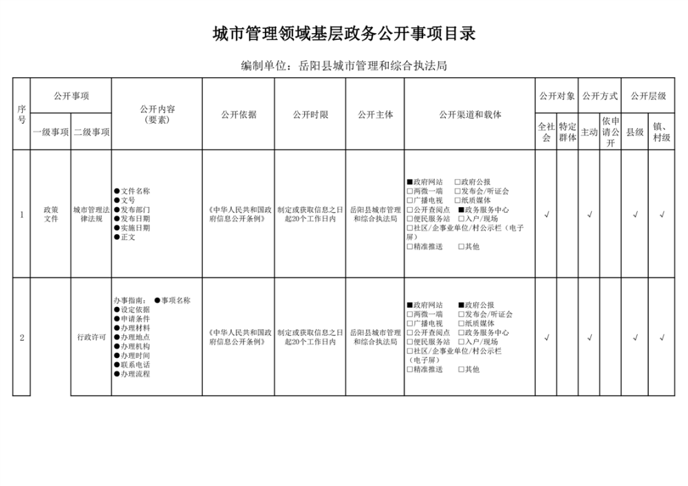 嶽陽縣城市綜合執法領域基層政務公開標準目錄