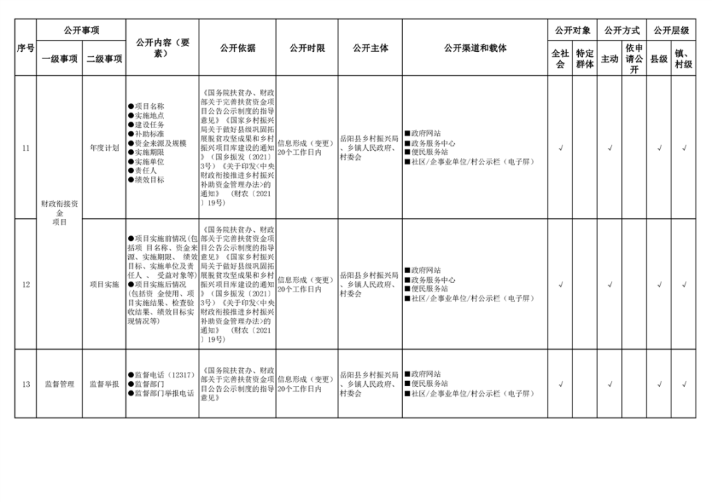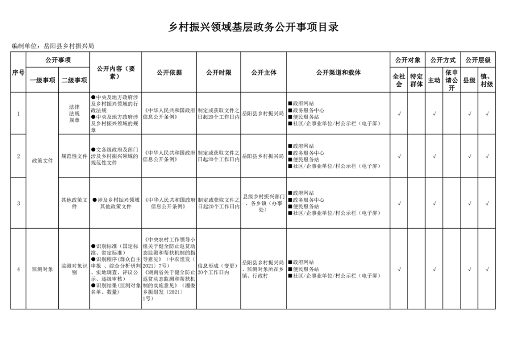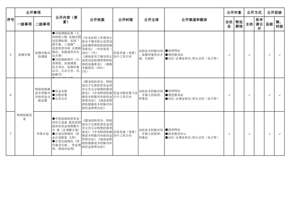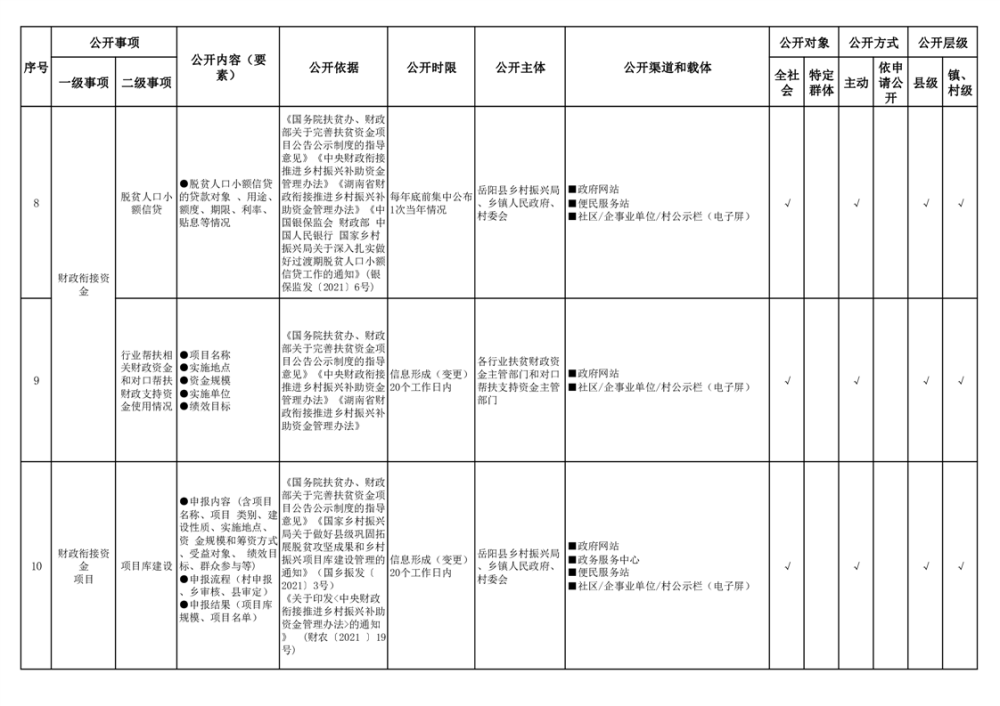 嶽陽縣扶貧領域基層政務公開標準目錄