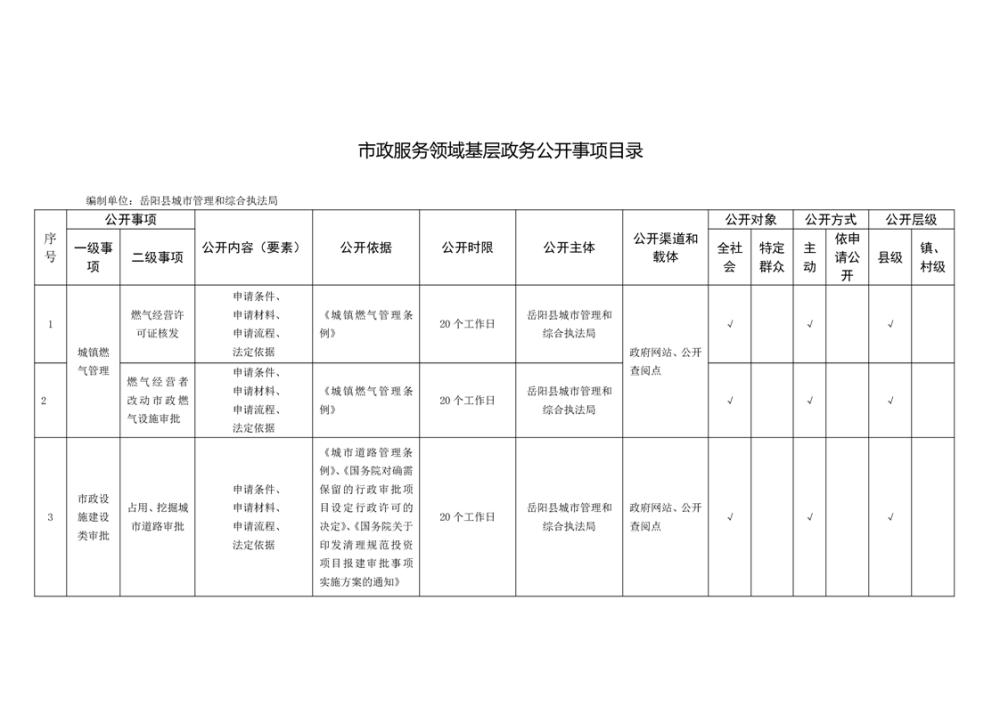 嶽陽縣市政服務領域基層政務公開標準目錄