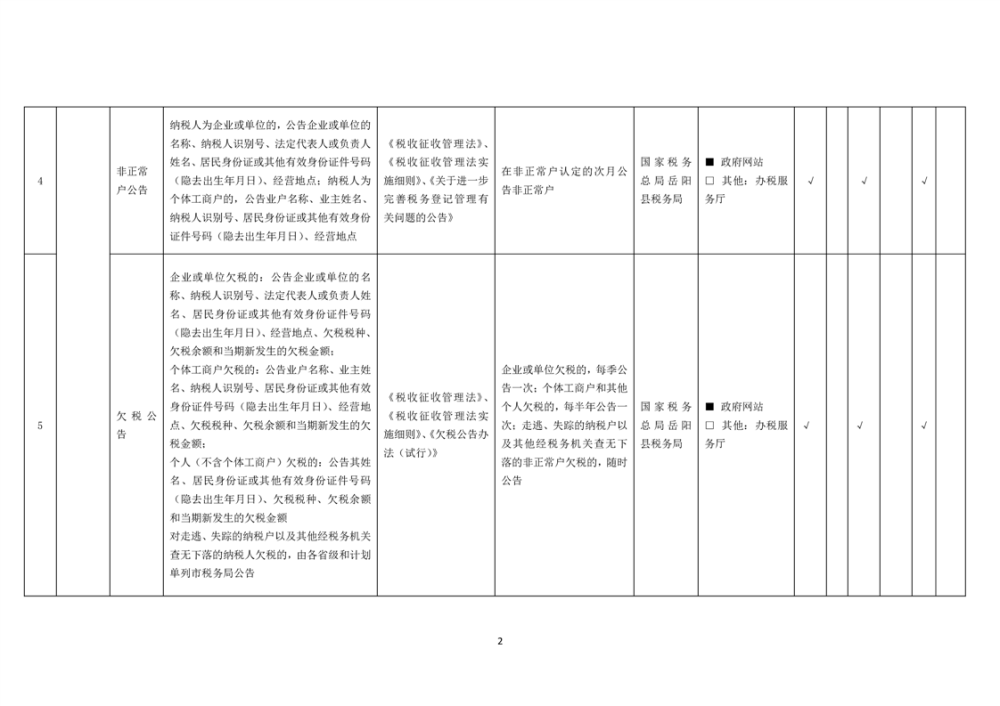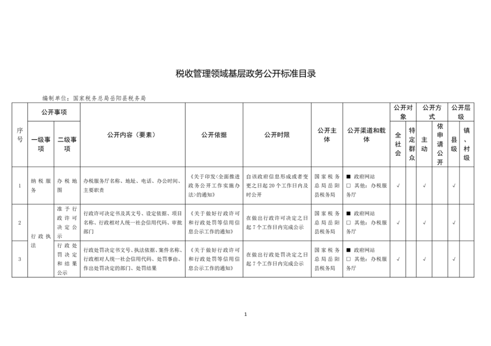 嶽陽縣稅收管理領域基層政務公開標準目錄