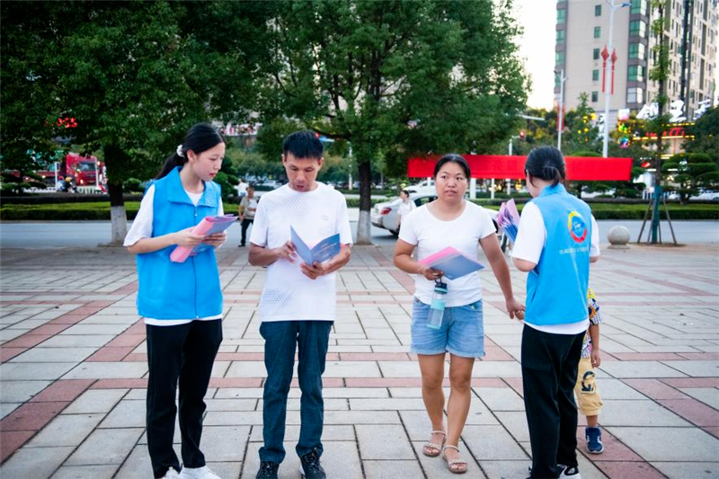 傍晚的城南河廣場上,精心布置了主題橫幅、宣傳展板,巨幅顯示屏播放著經濟普查宣傳片,並設置“互動台”,開展統計谘詢,活動現場氣氛熱烈,吸引了不少群眾駐足觀看、現場谘詢。工作人員積極向市民講解統計知識,介紹經濟普查,宣傳統計法律法規。現場共發放《致普查對象的一封信》《統計法律法規宣傳冊》、經普紀念品等各類宣傳物品數百份。